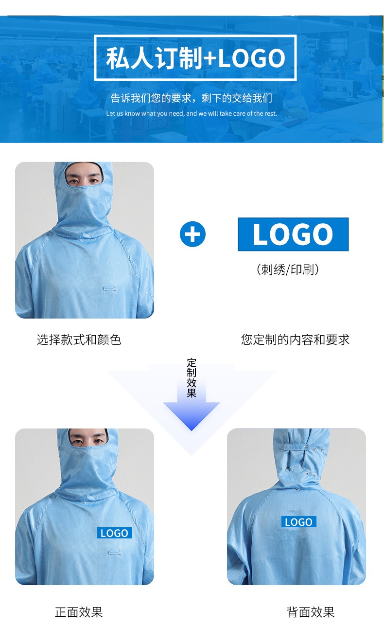 产品款式:连帽连裤三连体服,胯下拉链,加口罩款