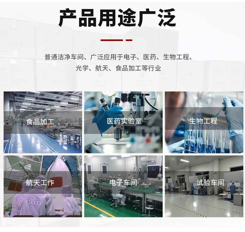 适用范围:电子、半导体、芯片、电器、精密仪器、光学、新能源、食品加工、生物科技、科研实验室、无尘洁净车间等多种场合适用