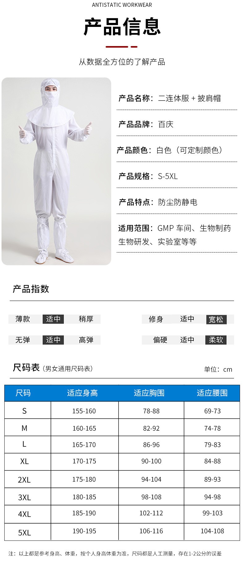 产品款式:衣裤相连,直开拉链+披肩帽